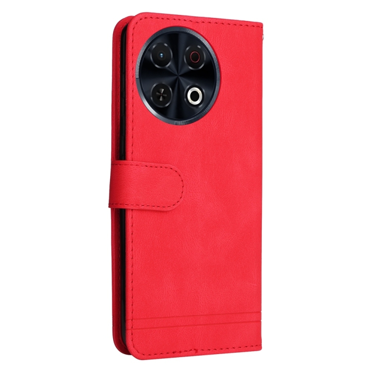 Funda de Cuero para Tecno Spark 30 Pro 4G con Botones de Metal y Diseño Árbol de la Vida (Rojo)