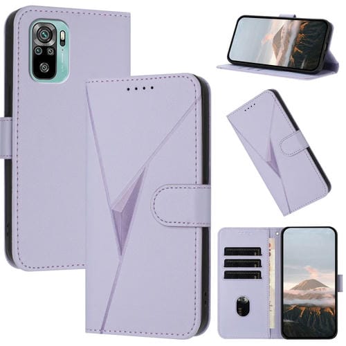 Funda de Cuero con Hebilla y Diseño Triangular para Redmi Note 10 4G (Morado Claro)