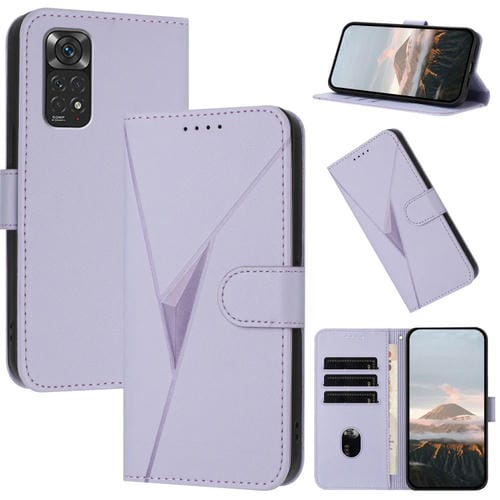 Funda de Cuero con Hebilla y Diseño Triangular para Redmi Note 11 4G (Morado Claro)