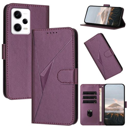 Funda de Cuero con Hebilla y Diseño Triangular para Redmi Note 12 Pro 5G (Morado Oscuro)