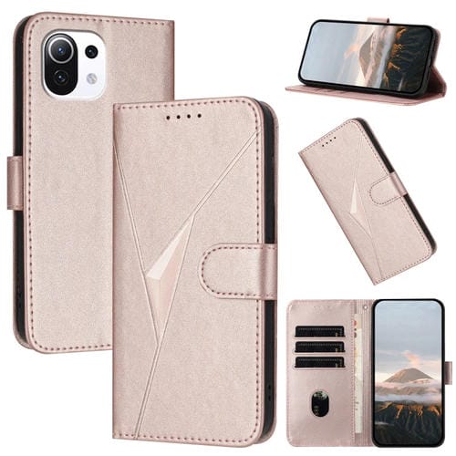 Funda de Cuero con Hebilla y Diseño Triangular para Xiaomi Mi 11 Lite (Oro Rosa)