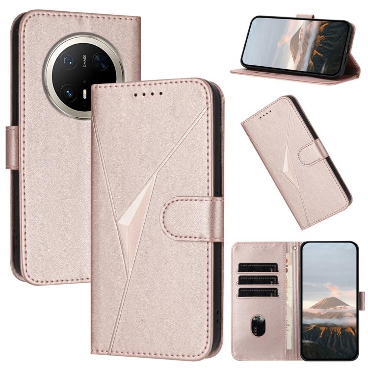 Funda de Cuero con Cierre de Hebilla y Diseño Triangular para Huawei Mate 70 Pro/Mate 70 Pro+ (Oro Rosa)