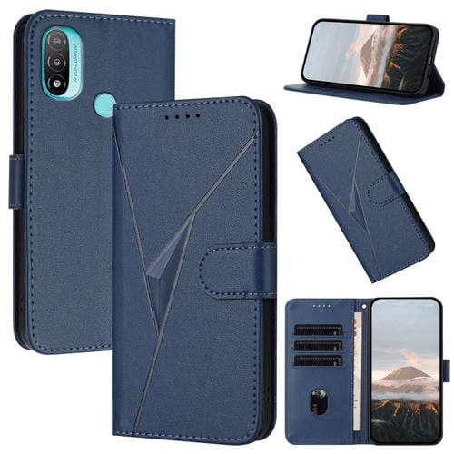 Funda de Cuero Motorola Moto E20 con Cierre de Hebilla y Diseño Triangular (Azul Real)