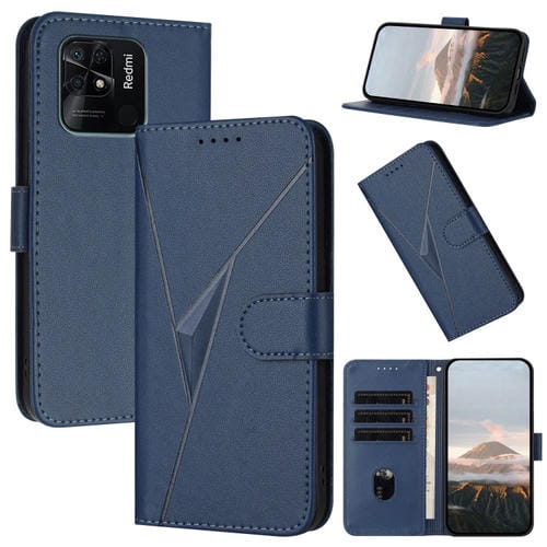 Funda de Cuero con Hebilla Triangular para Redmi 10C (Azul Real)