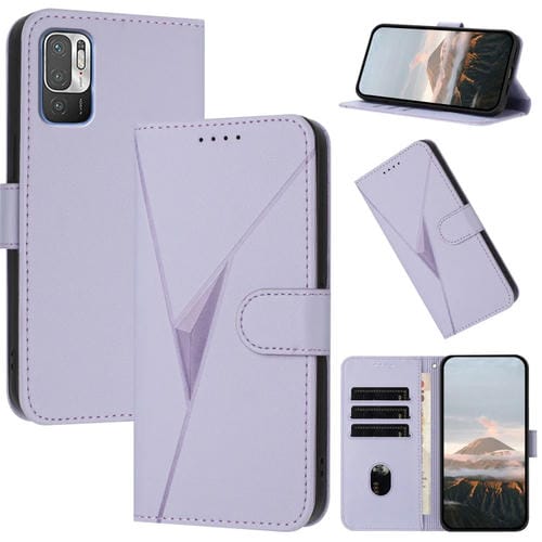 Funda de Cuero con Hebilla Triangular para Redmi Note 10 Je (Morado Claro)