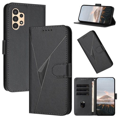 Funda de Cuero Samsung Galaxy A13 4G/5G Cierre Hebilla Diseño Triangular (Negro)