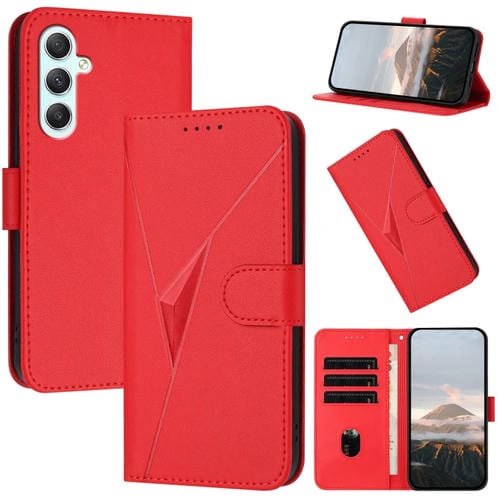 Funda de Cuero Samsung Galaxy A35 5G Cierre Hebilla Diseño Triangular (Rojo)