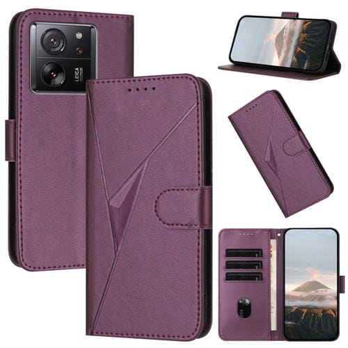 Funda de Cuero con Hebilla Triangular para Xiaomi 13T (Morado Oscuro)