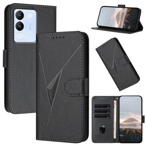 Funda de Cuero con Hebilla y Diseño Triangular para Vivo V29E Global (Negra)