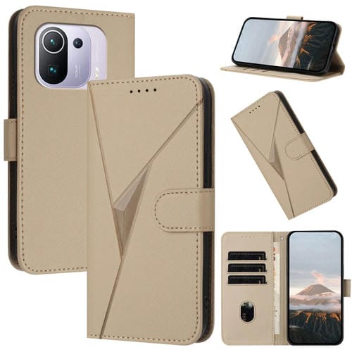 Funda de Cuero con Hebilla y Diseño Triangular para Xiaomi Mi 11 Pro (Dorada)