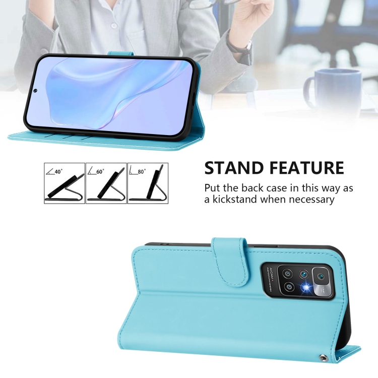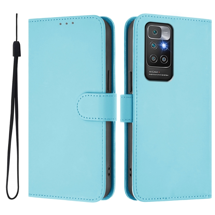 Funda de Cuero con Cordón para Redmi 10 4G 2021 con Diseño Global de Piel Sintética de Color Sólido (Azul Cielo)