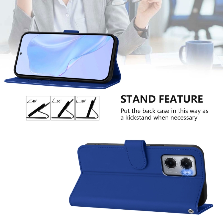 Funda de Cuero con Cordón para Redmi 10 5G/Note 11E 5G con Tacto de Piel de Color Sólido (Azul Oscuro)