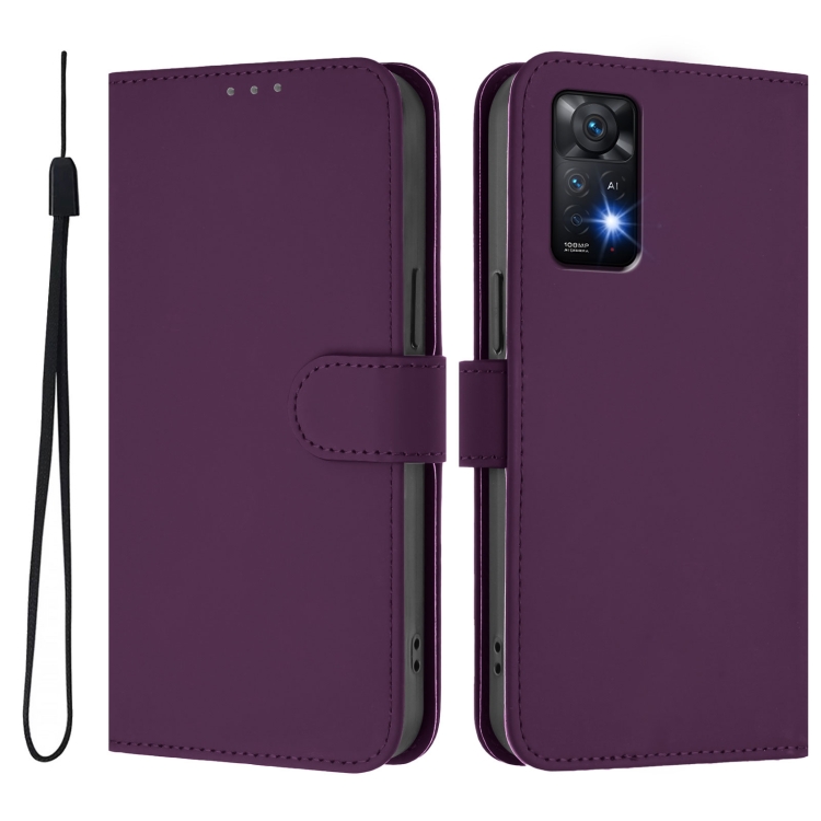 Funda de Cuero con Cordón para Redmi Note 11 Pro 4G, con Tacto de Piel Global, Color Sólido (Violeta)