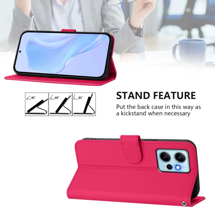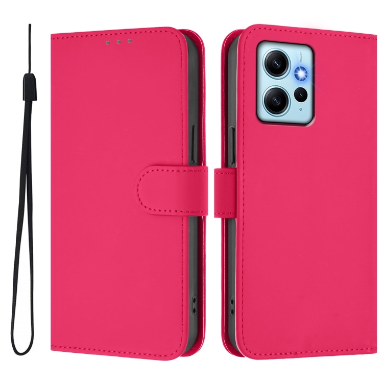 Funda de Cuero con Cordón para Redmi Note 12 4G, Color Sólido, Tacto Global (Rosa Rojo)