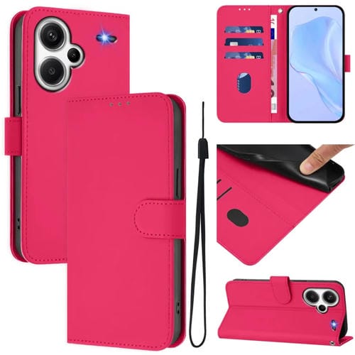 Funda de Cuero con Cordón para Redmi Note 13 Pro+ 5G, Color Sólido, Tacto Global (Rosa Rojo)