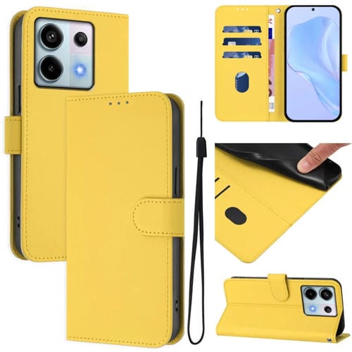 Funda de Cuero con Cordón para Redmi Note 13 Pro 5G con Sensación de Piel Global En Color Sólido (Amarillo Limón)