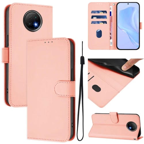Funda de Cuero con Cordón para Redmi Note 9T, Color Sólido y Tacto Global (Rosa)