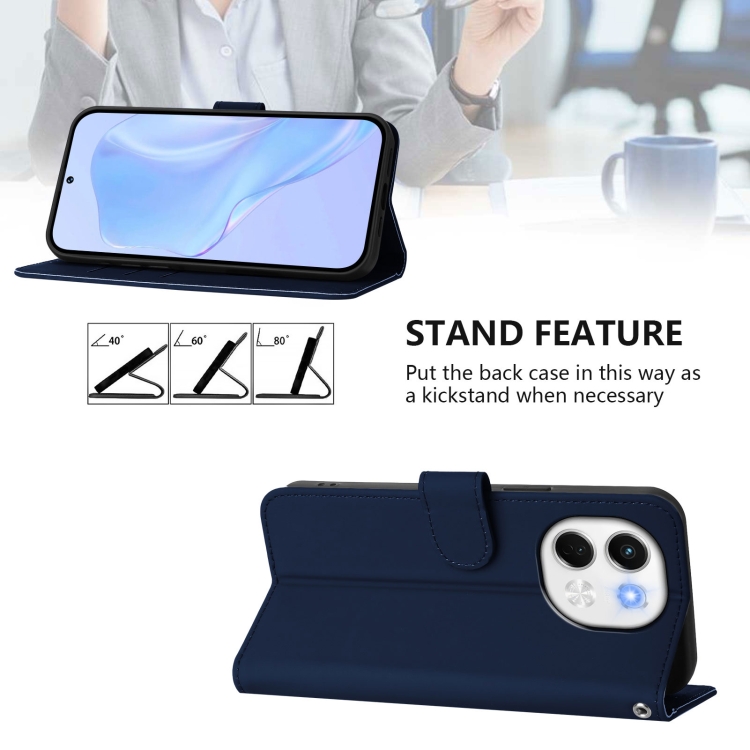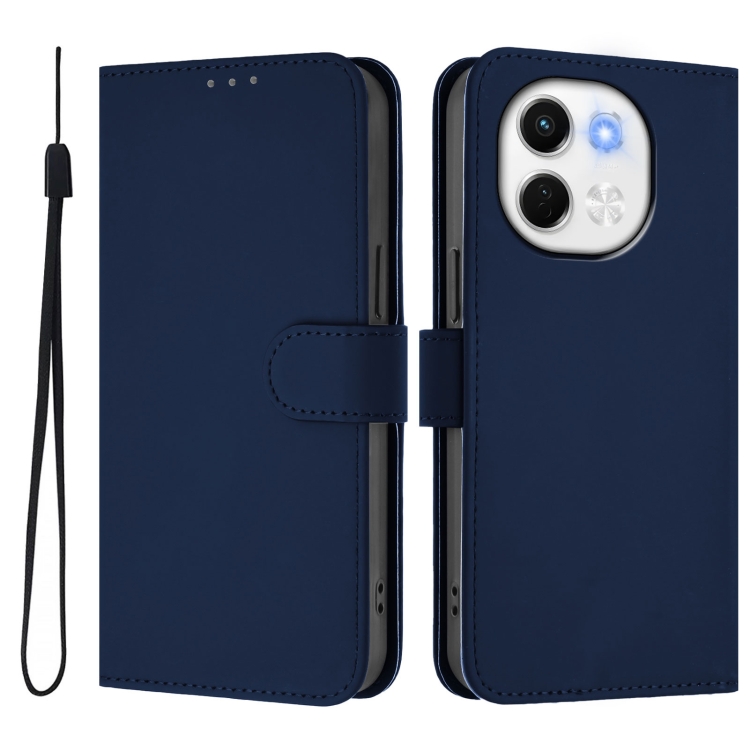 Funda de Cuero con Textura de Piel y Cordón para Tecno Spark 30 5G y Pova 6 Neo 5G (Azul Marino)
