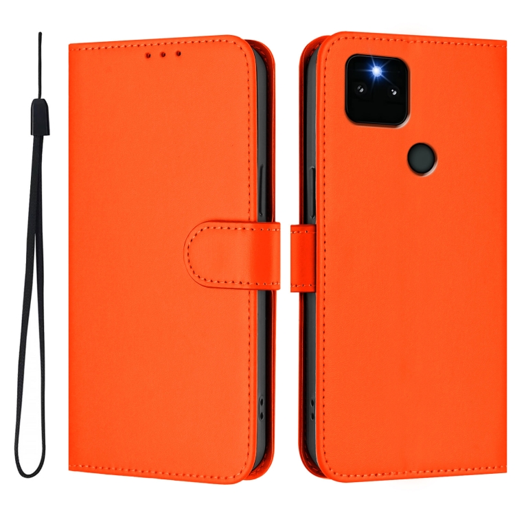 Funda de Cuero con Cordón para Google Pixel 5A (Naranja) Diseño de Piel Liso