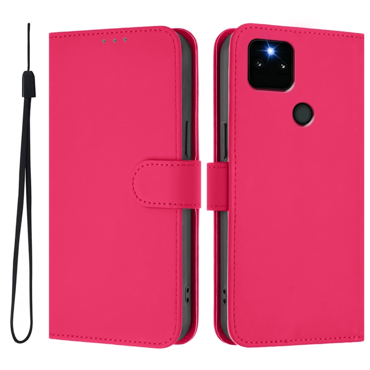 Funda de Cuero con Cordón para Google Pixel 5A (Rojo Rosa) Diseño de Piel Liso