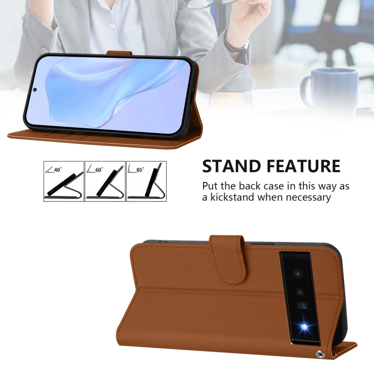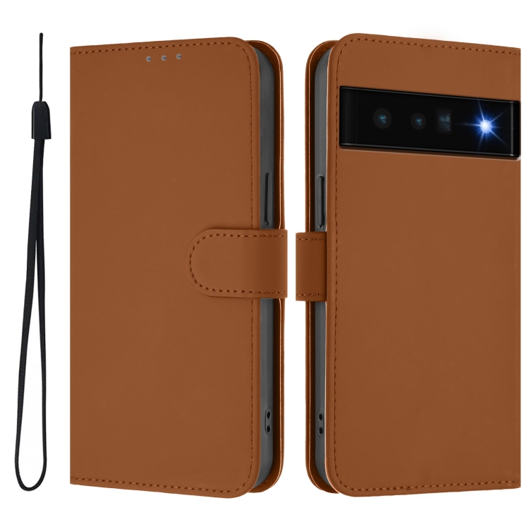 Funda de Cuero con Cordón para Google Pixel 6 Pro (Marrón) Diseño de Piel Liso
