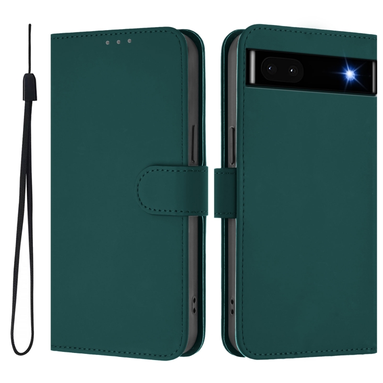 Funda de Cuero con Cordón para Google Pixel 6A (Verde Oscuro) Diseño Piel Liso