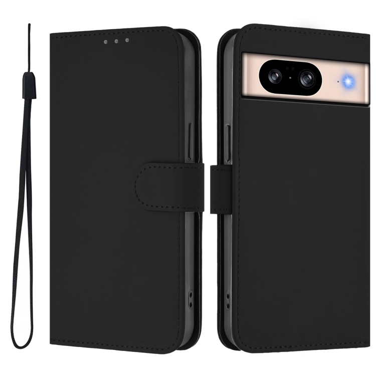 Funda de Cuero con Cordón para Google Pixel 8 (Negro) Diseño Piel Liso Tacto Agradable
