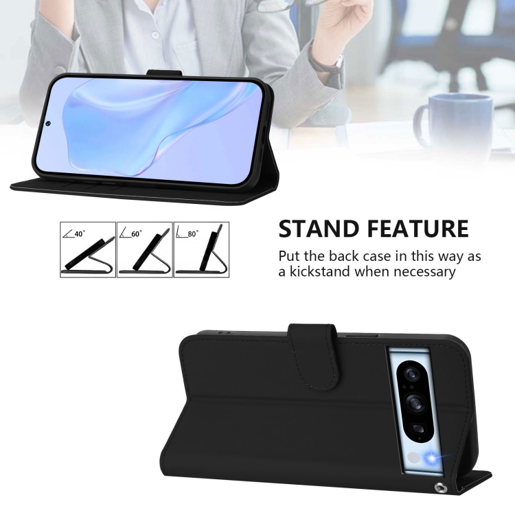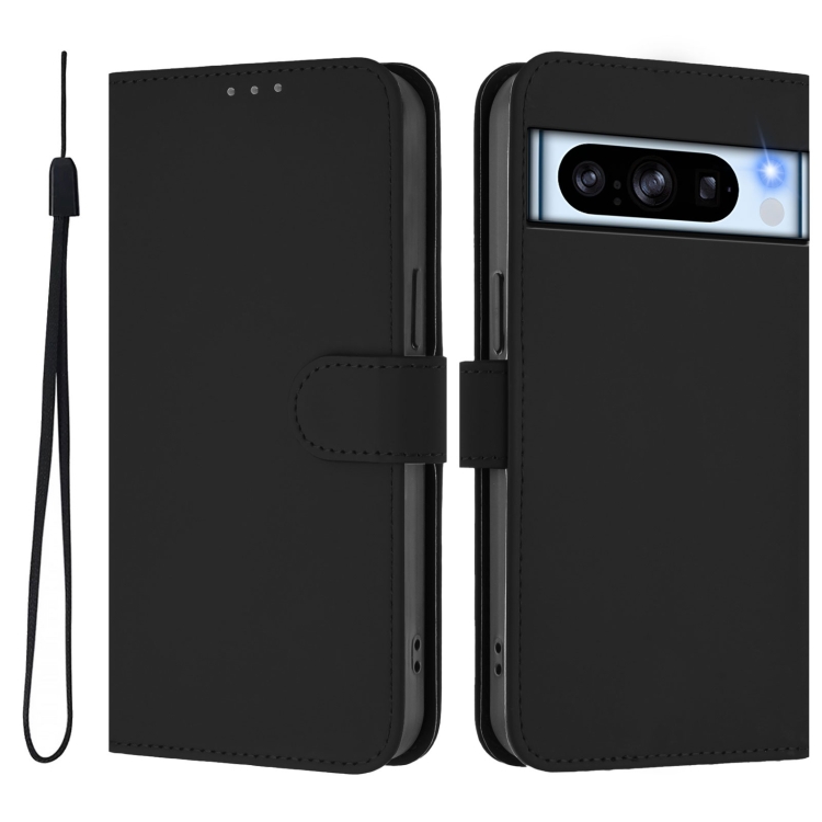 Funda de Cuero con Cordón para Google Pixel 8 Pro (Negro) Diseño Piel Liso Tacto Agradable