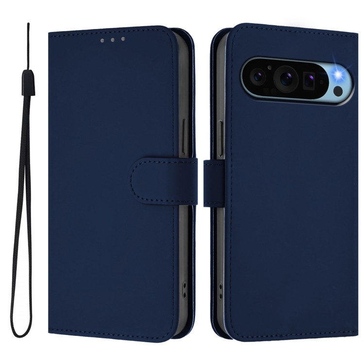 Funda de Cuero con Cordón para Google Pixel 9 Pro XL (Azul Marino)