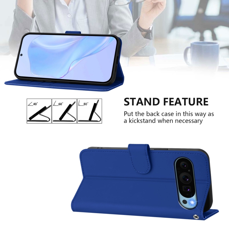 Funda de Cuero con Cordón para Google Pixel 9 Pro XL (Azul Oscuro)