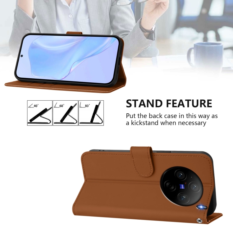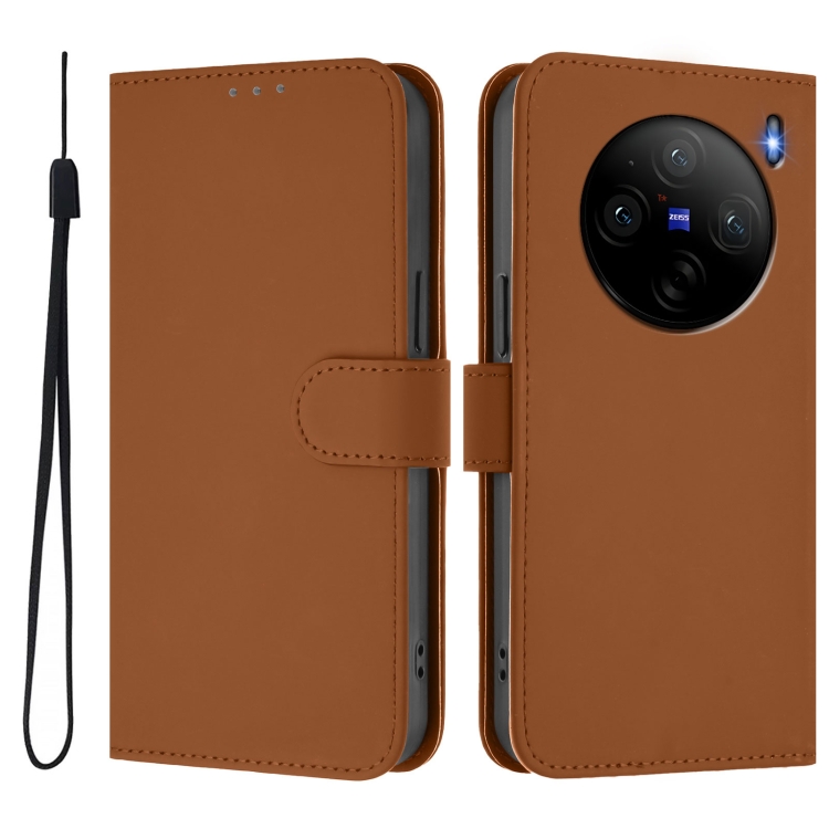 Funda de Cuero con Cordón para Teléfono con Diseño de Piel de Color Liso y Tacto Suave para Vivo X100S 5G (Marrón)