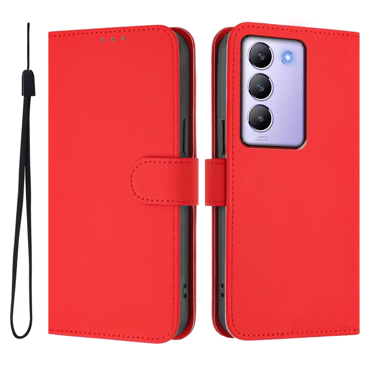 Funda de Cuero con Cordón para Teléfono con Diseño de Piel de Color Liso y Tacto Suave para Vivo Y100 5G Idn/V40 Se 5G (Rojo)
