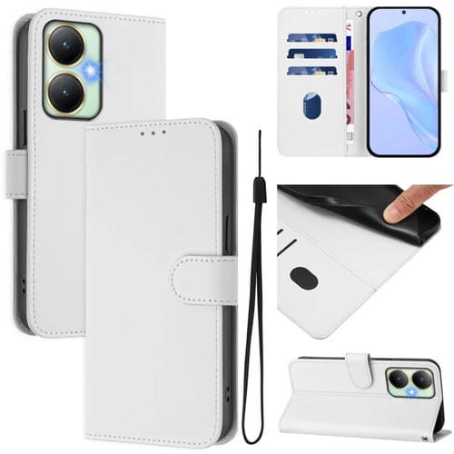 Funda de Cuero con Cordón para Teléfono con Diseño de Piel de Color Sólido y Tacto Global para Vivo Y27 4G 2023 (Blanco)