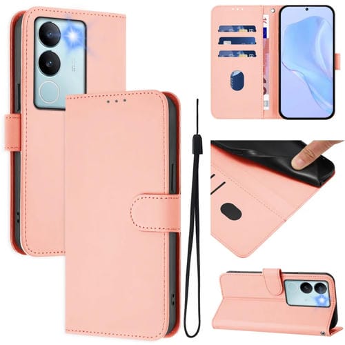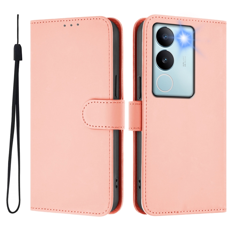 Funda de Cuero con Cordón para Teléfono con Diseño de Piel Sintética de Color Liso para Vivo V29 5G Global/V29 Pro (Rosa)