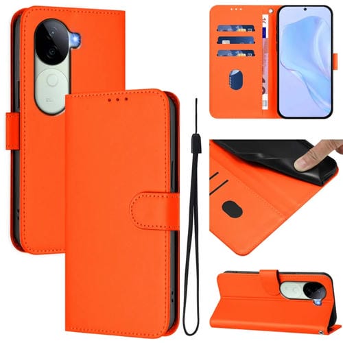 Funda de Cuero con Cordón para Teléfono con Diseño de Piel Sintética de Color Liso para Vivo V40E 5G India/Iqoo Z9S 5G (Naranja)
