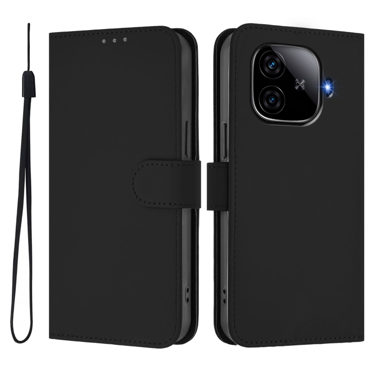 Funda de Cuero con Cordón para Teléfono con Diseño de Piel Sintética de Color Liso y Tacto Suave para Vivo Iqoo Z9 5G/Z9 Turbo 5G (Negro)