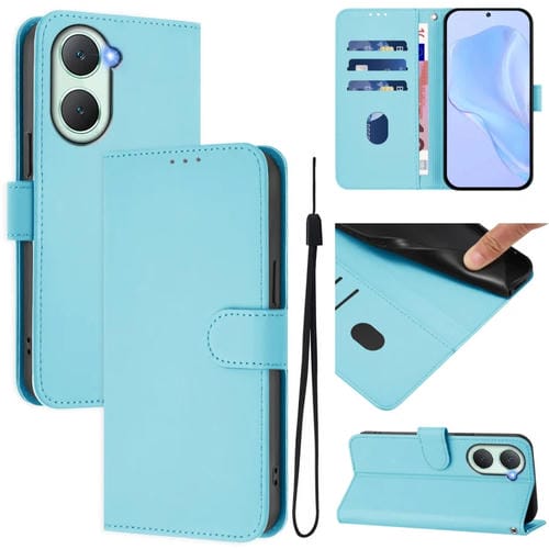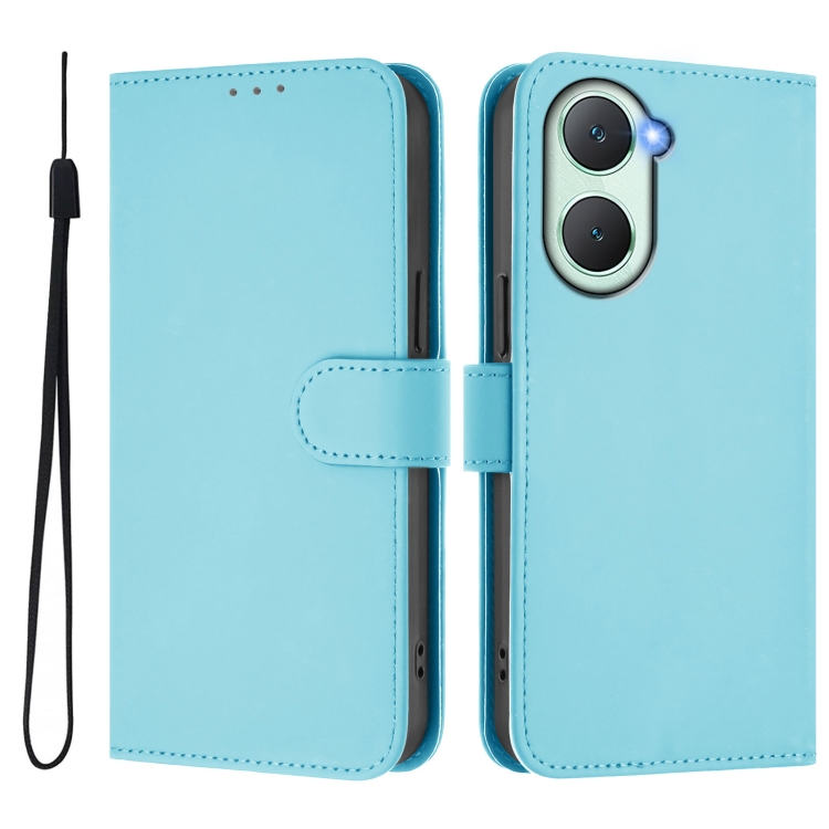 Funda de Cuero con Cordón para Teléfono con Diseño de Piel Sintética de Color Liso y Tacto Suave para Vivo Y03 4G Global/Y18 4G (Azul Cielo)