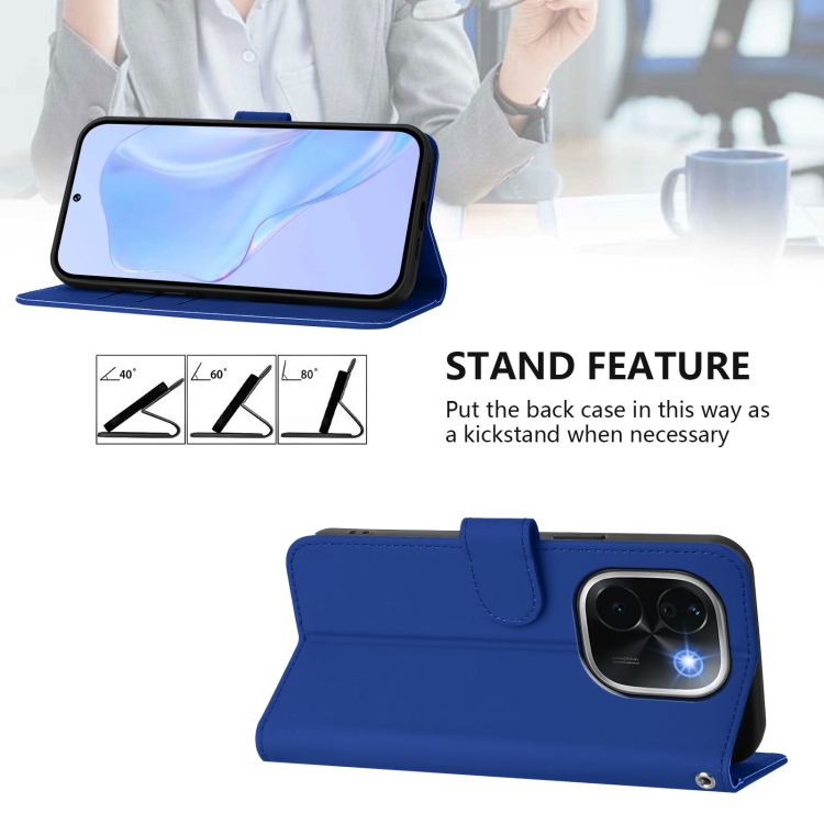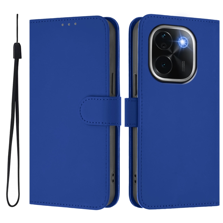 Funda de Cuero con Cordón para Teléfono con Diseño de Piel Sintética de Color Sólido y Tacto Indio para Vivo Iqoo Z9S Pro 5G (Azul Oscuro)