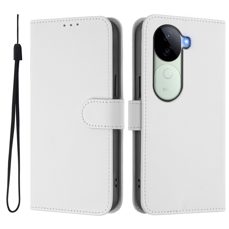 Funda de Cuero con Cordón para Teléfono con Diseño de Piel Sintética de Color Sólido y Tacto Suave para Vivo V40E 5G India/Iqoo Z9S 5G (Blanco)