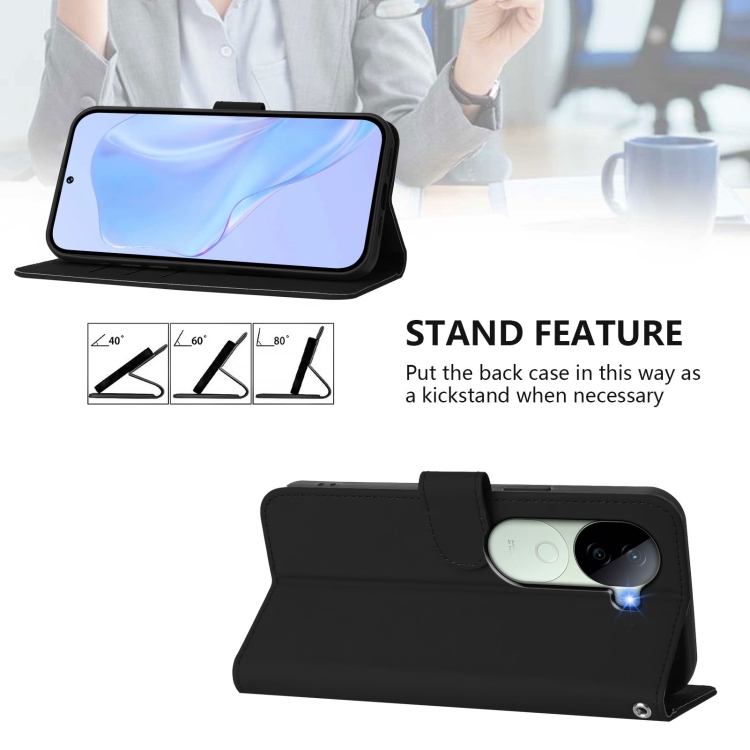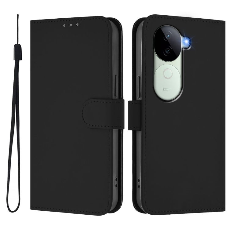 Funda de Cuero con Cordón para Teléfono con Diseño de Piel Sintética de Color Sólido y Tacto Suave para Vivo V40E 5G India/Iqoo Z9S 5G (Negro)