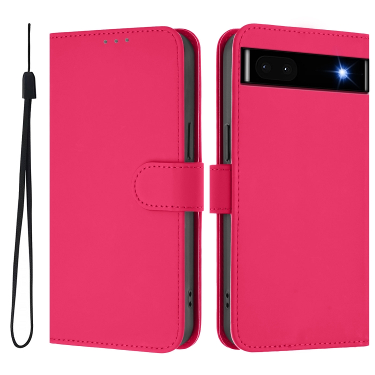 Funda de Cuero con Cordón para Google Pixel 6A con Sensación de Piel (Rojo Rosa)