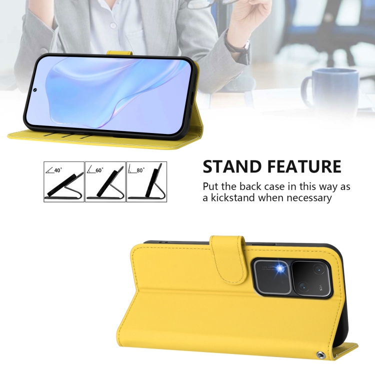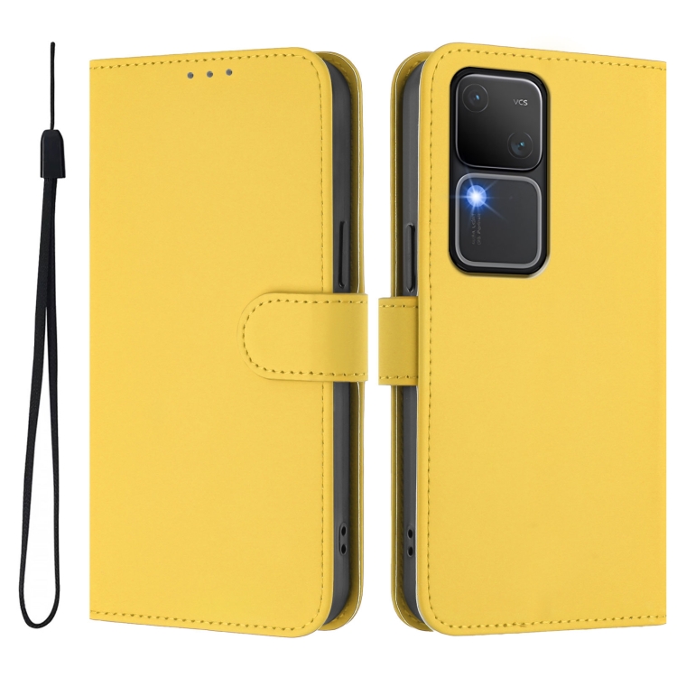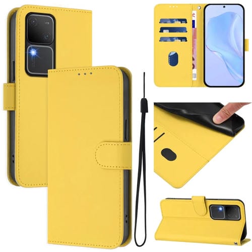 Funda de Cuero con Cordón para Teléfono con Sensación de Piel de Color Sólido para Vivo V30 5G Global / V30 Pro Global (Amarillo Limón)