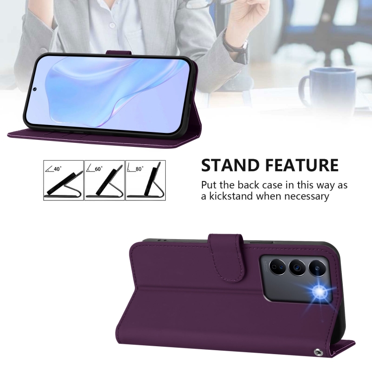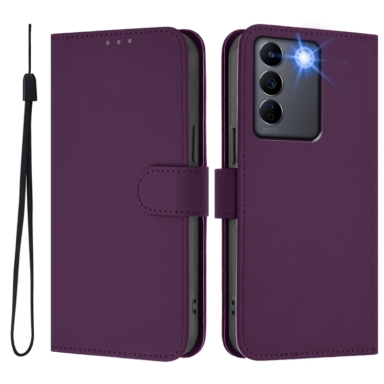 Funda de Cuero con Cordón para Teléfono con Tacto de Piel de Color Liso para Vivo V27E 4G Global / T2 4G Global (Violeta)
