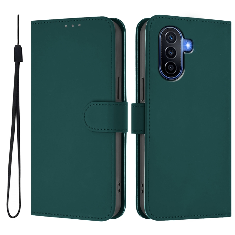 Funda de Cuero con Cordón para Huawei Enjoy 50 4G y Nova Y70 Plus (Verde Oscuro)