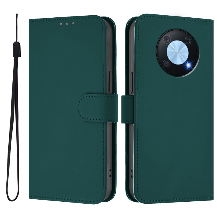Funda de Cuero con Cordón para Huawei Enjoy 50 Pro 4G y Nova Y90 con Tacto Piel (Verde Oscuro)