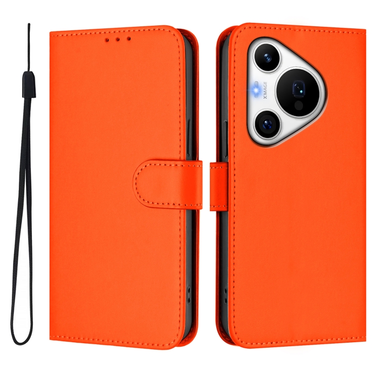 Funda de Cuero con Cordón para Huawei Pura 70 Pro y 70 Pro+ con Textura de Piel (Naranja)
