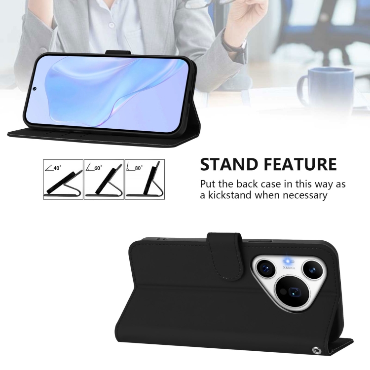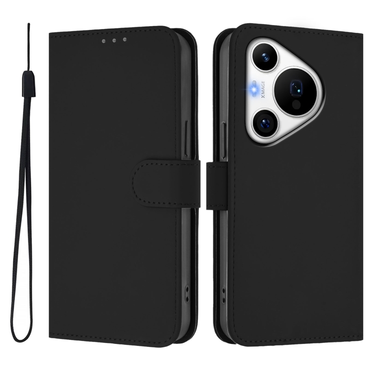 Funda de Cuero con Cordón para Huawei Pura 70 Pro / 70 Pro+ Textura de Piel (Negro)