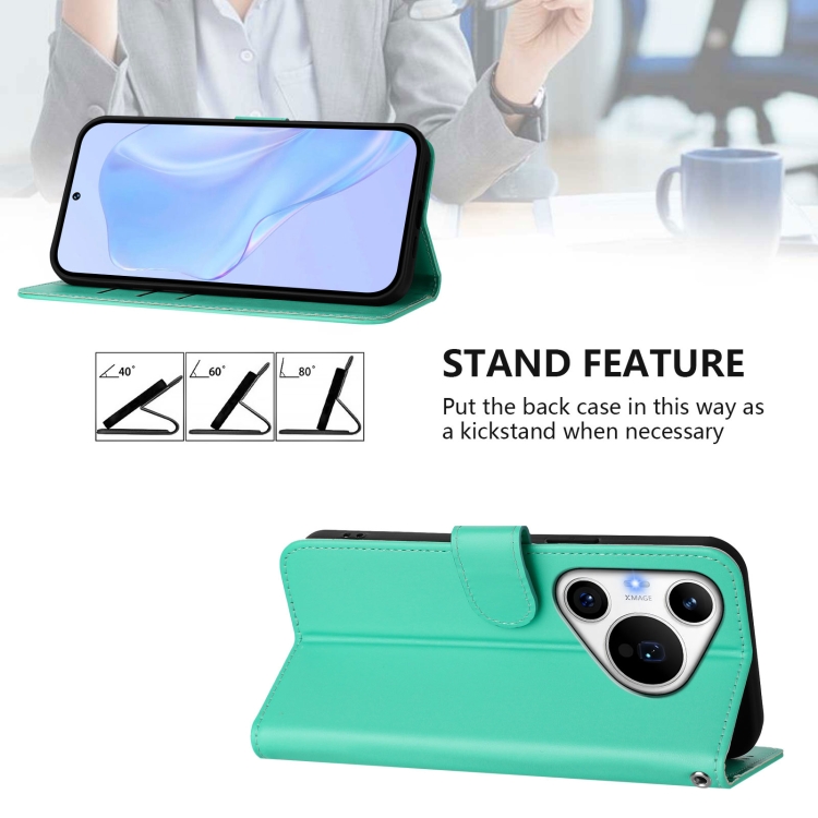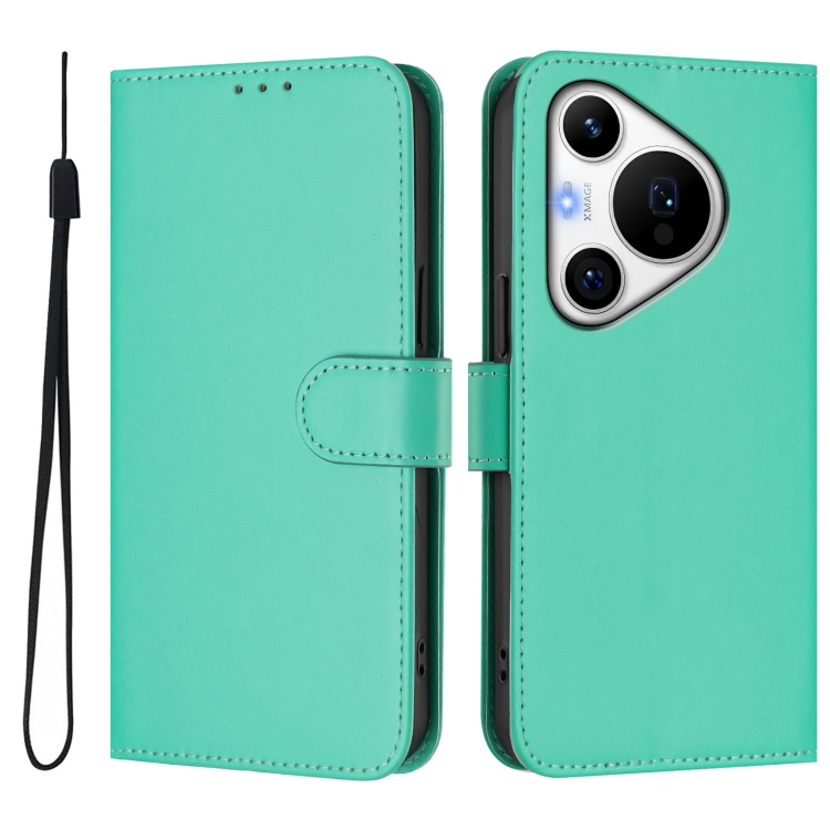 Funda de Cuero con Cordón para Huawei Pura 70 Pro y 70 Pro+ con Textura de Piel (Verde)
