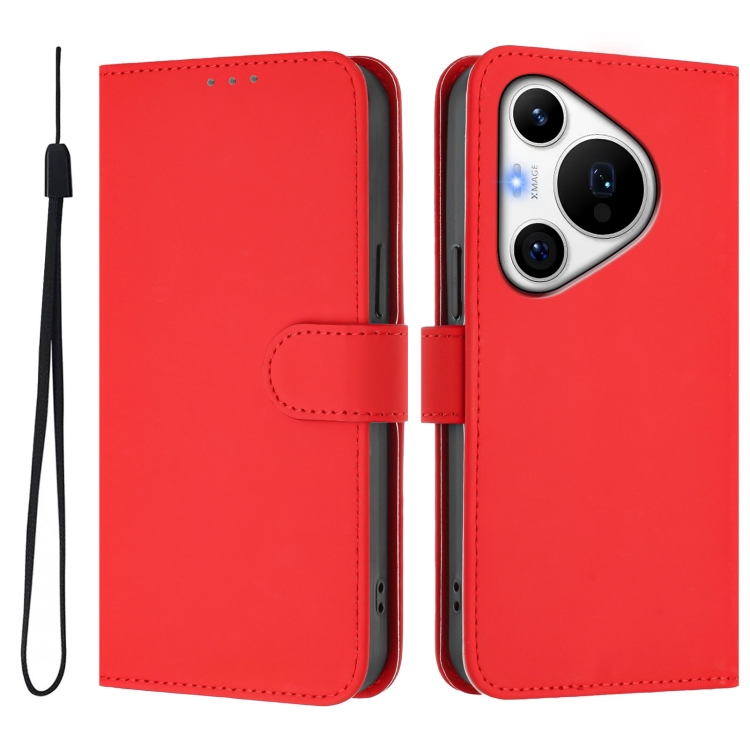 Funda de Cuero con Cordón para Huawei Pura 70 Pro y 70 Pro+ Textura Piel (Rojo)