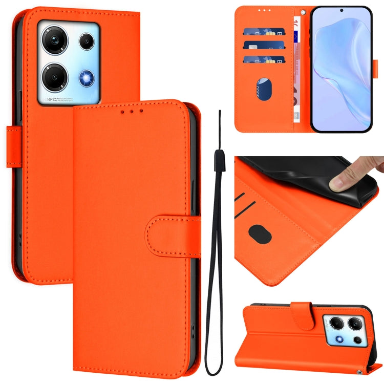Funda de Cuero con Cordón para Teléfono Infinix Note 30 4G/5G con Tacto de Piel (Naranja)